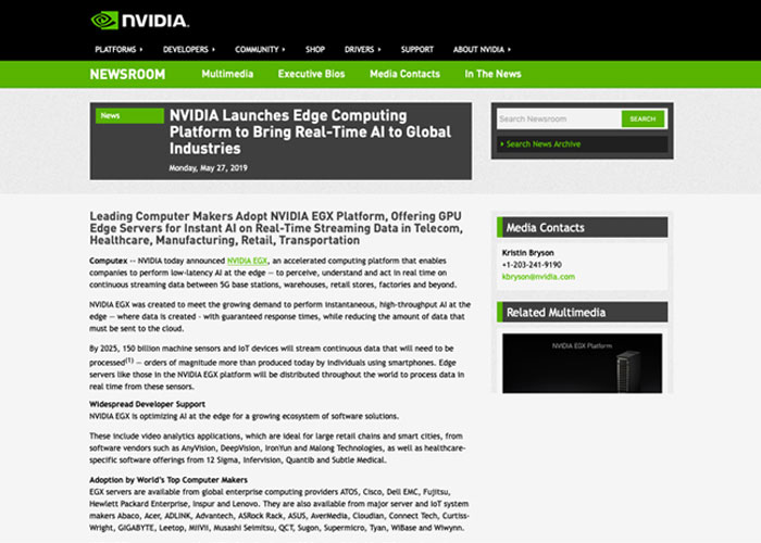 NVIDIA EGX邊緣計(jì)算平臺先行者